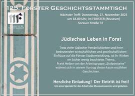 125. Forster Geschichtsstammtisch -Jüdisches Leben in Forst 10.11.2025 20:00 - Museumsverein