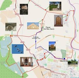 Die Tour startet am Parkplatz Hauptfriedhof. Es handelt sich um eine geführte Radtour zu kulturellen und künstlerischen Sehenswürdigkeiten im nördlichen Teil von Forst (Lausitz) und den Ortsteilen über Horno, Eulo, Mulknitz, Sacro und Naundorf ca. 20 km.