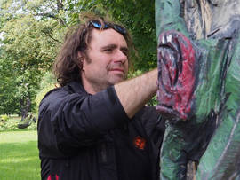 Heute besuchte Silvio Ukat, Teilnehmer beim „1. Internationalen Kunstsymposium der Rosenstadt Forst (Lausitz)“ 2013, und konnte zum ersten Mal sein Werk „Border Gate“ an seinem Standort auf der Reisigwehrinsel in natura sehen.