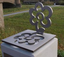 Der Essener Künstler Thomas Rother möchte mit diesen Rosen aus Stahl den Opfern des mörderischen 2. Weltkrieges gedenken und sieht sie gleichzeitig als Versöhnungsgeste mit dem Aufruf "Blumen statt Waffen".