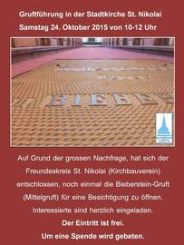 Auf Grund der großen Nachfrage, hat sich der Freundeskreis St. Nikolai (Kirchbauverein) entschlossen, noch einmal die schwere Abdeckung der Mittelgruft für eine Besichtigung zu öffnen.
