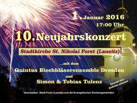 Am 1. Januar 2016 um 17 Uhr laden die Stadt Forst (Lausitz) und die evangelischen Kirchengemeinden traditionell und bereits zum 10. Mal zum Neujahrskonzert in die Stadtkirche St. Nikolai ein.