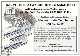 62. Forster Geschichtsstammtisch „Bürsten für die Textilbuden … und die Welt“ 12.03.2019 20:00 - Frank Henschel