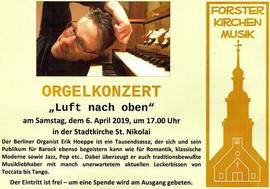 Der Berliner Organist Erik Hoeppe kommt nach Forst mit dem Orgelkonzert "Luft nach oben"! 02.04.2019 16:17 - Frank Henschel
