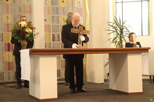 Feierlich ist heute um 14.00 Uhr die neue Altargestaltung des Brieselanger Künstlers Helge Warme am Pfingstmontag in Forst in einem Gottesdienst eingeweiht worden.