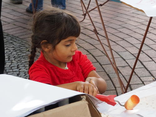 Eine Blume als Dankeschön 04.09.2015 12:15 - Helmut Fleischhauer Zum Ansehen der Fotos in der Bilderstrecke auf eines der Fotos klicken Heute gegen Mittag waren einige Forsterinnen und Forster vor dem Kaufland sichtlich überrascht als ihnen von Kindern oder Erwachsenen ein Blume mit einem kleinen angehängten Kärtchen überreicht wurde. "Danke" stand auf dem Kärtchen.Heute begann im Rahmen der Interkulturellen Woche mit der Kreativgruppe das erste Projekt in der Forster Innenstadt. Asylbewerber aus Syrien, Albanien, Pakistan und anderen Ländern hatten eine Dankeschön-Aktion für die Forster Bürger organisiert. Der Malkurs mit Kindern und dem syrischen Architekten und Künstler Rami startete um 11.30 Uhr in die Innenstadt. An der Promenade konnten Passanten beim Entstehen kleiner Kunstwerke zuschauen, die Flüchtlinge wollten sich mit handgemalten Karten bei den Bürgern für die Aufnahme in der Stadt bedanken. Zum Mitternachtsshopping des Gewerbevereins Rosenstadt Forst e.V.am 19. September gestaltet die Kreativgruppe mit Lisa Temsvari und dem NIX e.V. eine leerstehende Ladeneinheit in der Berliner Straße. An diesem Abend können Besucher mit Flüchtlingen und Partnern des Forster Flüchtlingsnetzwerkes ins Gespräch kommen, andere Kulturen kennenlernen und eine Ausstellung besuchen. Die interkulturelle Woche steht unter dem Motto: „Vielfalt. Das Beste gegen Einfalt.“ - Interkulturelle Woche in der Stadt Forst (Lausitz) |