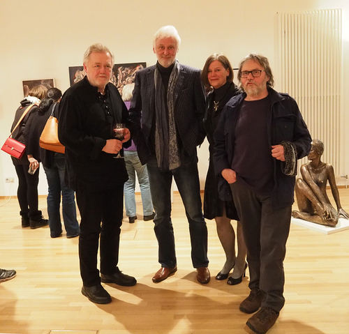„Lusst und Laster“ - Ausstellungseröffnung zu einem frühlingshaften Thema 22.03.2016 08:52 - Helmut Fleischhauer Zum Ansehen der Fotos in der Bilderstrecke auf eines der Fotos klicken Sie kennen den geflügelten Begriff „Frühlingsgefühle“? Jedes Jahr beschleichen sie uns Menschen erneut und nehmen uns dann peu à peu in Besitz. Ganz keck behaupte ich, dass sie nicht nur den Begriff sondern auch das Gefühl sehr genau kennen.„Lusst und Laster“ war der Titel der Ausstellungseröffnung am 11. März im Forster Kompetenzzentrum …. und der Titel enthält keineswegs einen Schreibfehler. Lust ist so etwas Schönes, da ist eine Verdoppelung eines Buchstaben bereits im Titel mehr als angebracht. Der Freitag begann mit schüchternen und keineswegs frühlingshaften +2° Celsius.. Abends im komfor betrachteten die Besucherinnen und Besucher schon vor dem Einnehmen der Plätze die Plastiken, Gemälde, Drucke und Zeichnungen von Frank Otto Sperlich, Walter G. Goes und Dr. Günther Haußmann, die sie zu dem Thema mitgebracht hatten. Üppiges, Hintersinniges, Nachdenkliches, Verständliches, Verwunderndes … Filmischen Sequenzen zur Sittengeschichte von der wilhelminischen bis zur Neuzeit begleiteteten die Eröffnung der Ausstellung Die Doppelmoral und der Zwiespalt zwischen dem offiziellen Dogma und der tatsächlichen Wirklichkeit wurden an vielen Beispielen verdeutlicht. Die Reaktionen der Besucherinnen und Besucher schwankte von Erstaunen bis zur Erheiterung. Die Damen des speziellen Gewerbes waren in der Gesellschaft verachtet, hatten aber reichlich Kundschaft. In noch stärkerem Maß galt das für die Herren, die dem homosexuell veranlagtem Teil der männlichen Bevölkerung ihre Dienste anboten. Der erste Hersteller von Kondomen war bereits 1912 die Firma Fromm. Da die Kondome aber noch einen stattlichen Preis hatten, fiel den Damen des „Lustgewerbes“ eine Lösung ein … einsammeln, waschen und auf die Wäscheleine zum Trocknen hängen. Heute würde man das direktes Recycling nennen. Im „Tausendjährigen Reich“ wurde es besonders für Menschen, die sich der gleichgeschlechtlichen Liebe hingezogen fühlten, sehr gefährlich. Die Gesetze ermöglichten eine drastische Verfolgung und drakonische Strafen. Nicht wenige der betroffenen Personen wurden in Konzentrationslagern eingesperrt. Bei der Zerschlagung der stark gewordenen SA wurde die Neigung von Ernst Röhm als willkommener Grund genutzt. Auch nach dem Zweiten Weltkrieg dauerte es einige Jahrzehnte, bis die vielen moralischen Zwänge gelockert wurden. Das war in beiden deutschen Staaten so. Im Westen begann die Lockerung mit den Studentenprotesten 1968 und der beginnenden Hippiezeit. In der Eröffnungsrede sagte Dr. Günther Haußmann: „Schon ganz lange ist mir klar: Alles was schön ist, ist entweder unmoralisch, ungesetzlich oder macht dick.“ Diese Doppelmoral lebt folglich noch immer. In der Pause und nach der Veranstaltung sprach ich mit einigen Besuchern, die voll des Lobes waren … unabhängig vom Alter. So sagte eine Besucherin: „In den filmischen Sequenzen habe ich so manch mir bislang Unbekanntes erfahren.“ Frank Otto Sperlich – Jahrgang 1951 - ist Maler, Filmemacher, Kameramann und Regisseur Walter G. Goes - Jahrgang 1950 – ist Grafiker, Maler und Lyriker Dr. Günther Haußmann – Jahrgang 1948 – ist Künstler und Arzt Die Herangehensweise der drei Künstler an das Thema „Lust und Laster“ ist sehr unterschiedlich, ein Besuch der Ausstellung ist ausgesprochen lohnenswert. Öffnungszeiten finden Sie hier auf der Webseite. Besuche zu anderen Zeiten sind nach vorheriger Absprache möglich! Foto 1: "Galatea" von Dr. Günther Haußmann (vorne), im Hintergrund Werke von Frank Otto Sperlich, Walter G. Goes und Dr. Günther Haußmann Foto 2: Sabine Lindner mit den Künstlern Walter G. Goes, Dr. Günther Haußmann und Frank Otto Sperlich (v.l.n.r.) Foto 3: Ein Besucher vor einem Kunstwerk (Wandteppich mit Zitaten von O.Wilde gestaltet von Dr. G. Haußmann.) |