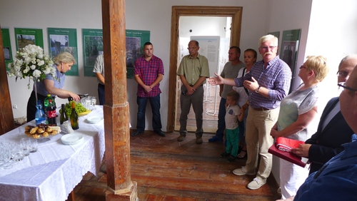 Neue Ausstellungsräume im Pförtener Schloss eröffnet! 16.08.2016 20:00 - Frank Henschel ![]() Deutsch/polnische Freunde der Facebook-Seite „Brody/Pförten – virtual Museum“ nutzen diese Räume nun für eine erste kleinere Präsentation von geschichtsträchtigen Orten und Objekten in der Region Pförten. Die Ausstellung „Geschichte und Geschichten in Stein“ führt die Besucher zu versteckten Mühlenruinen, alten Brunnen, Gedenksteinen, Freimaurerzeichen oder zum Ort des gestohlenen Brückenmännchens. Mit GPS-Daten können Interessierte vom Pförtener Schloss aus mit dem Rad, zu Fuß oder gar auf dem Pferd in die Umgebung von Pförten, Kohlo, Beitzsch und Forst Berge starten. Die zweisprachige Ausstellung ist täglich von 10-18 Uhr geöffnet. |