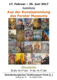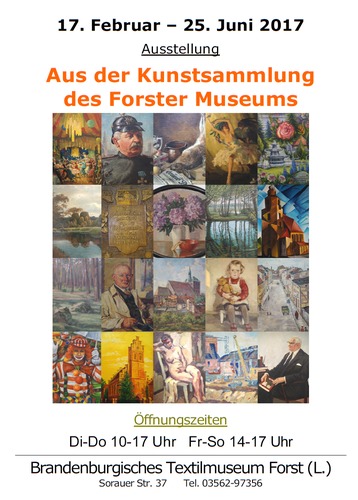 Neue Kunstaustellung im Museum und Künstler live erleben 16.03.2017 23:02 - Frank Henschel Am 25. März findet im Brandenburgischen Textilmuseum Forst (Lausitz) ein besonderer Aktionstag, gemeinsam mit den Forster Malfreunden, statt.Interessierte Besucher haben in der Zeit von 14 bis 17 Uhr die Möglichkeit, den Künstlern bei der Arbeit „über die Schulter“ zu schauen und bei Interesse unter Anleitung die eine oder andere Maltechnik auf Papier, Leinwand oder Seide selbst auszuprobieren. Vielleicht entwickelt sich bei dem Einen oder Anderen daraus sogar ein neues Hobby. Zusätzlich bieten die Künstler eine Auswahl ihrer Werke zum Verkauf an. Wer als Hobbykünstler ebenfalls Lust hat, an diesem Tag einige seiner Arbeiten zu zeigen, meldet sich bitte bis zum 17. März 2017 im Museum unter Tel. 03562-97356. Selbstverständlich kann auch an diesem Tag die Sonderausstellung „Aus der Kunstsammlung des Forster Museums“ angeschaut werden. |