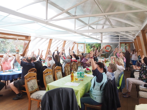 Es begann mit …. 14.06.2018 12:56 - Helmut Fleischhauer Zum Ansehen der Fotos in der Bilderstrecke auf eines der Fotos klicken …. einem Spendenaufruf von Ingrid K. Ebert vor einigen Wochen. Für ihre Drehorgel fragte sie über facebook nach Unterstützung für eine Rolle des Forster Rosengartenwalzers. Anja Abendrot, Admin der Forster facebook-Gruppe „Forst (Lausitz), früher und heute“, verbreitete den Aufruf und nahm den organisatorischen Teil in die Hand. Prompt meldeten sich Forster und boten Unterstützung an. Ingrid K. Ebert war vollkommen überrrascht, als es bei ihr klingelte und Geldspenden in ihre Hand gedrückt wurden. Die Stadt Forst (Lausitz) wurde auf die Aktion aufmerksam und so wurden alle Spenden über den „Lokalen Verfügungsfond Forst (Lausitz)“ verdoppelt. € 260,- sind bisher an Spenden eingegangen, dazu kommen € 260,- aus dem Fond.. Einer weiteren Rolle für den Rosengartenmarsch steht also nichts im Wege. Am 25. Mai war die Rolle fertig und Ingrid hielt sie stolz in Händen und schrieb auf ihrer facebook-Seite: „Die Rolle ist angekommen, die Liedblätter werden gedruckt, der Partyraum wird vorbereitet. Jetzt müsst ihr nur noch kommen und mitmachen. Erweisen wir stimmgewaltig einem alten Forster Lied die Ehre.“ Damit bei der Premiere jeder den Text vor sich hatte, druckte das „Forster Wochenblatt“ die Textblätter, Hans-Rainer Engwicht stellte sein Partygewächshaus zur Verfügung und am 13. Juni war der große Tag. Gut fünfzig Forster waren erschienen, darunter Angelika Geisler, Stadtentwicklung und zuständig für den Verfügungsfond, und Kathleen Hubrich, Projektbearbeiterin der DSK Deutsche Stadt- und Grundstücksentwicklungsgesellschaft mbH & Co. KG, sowie Editha und Manfred Mudlack. Ingrid K. Ebert erzählte mit Humor über die Geschichte der Drehorgeln und deren Funktionsweise, bevor Wolfgang Dannat die Anwesenden mit seinem Lied über die „Sternenfänger“ auflockerte. Dann kam eine erste Gesangsübung unter Mithilfe eines stimmgewaltigen Forster Freundeskreises. Irgendwann haben sie festgestellt, dass ihre Stimmen zusammen passen und sechs der Freunde kamen zu der Premiere. Alle waren bester Stimmung und gelockert, nun konnte die Premiere des Rosengartenwalzers auf der Drehorgel und mit Gesangsbegleitung der Forster beginnen. Die Premiere war ein voller Erfolg. Für die Besucher gab es neben Getränken Schnittchen und Hans-Rainer Engwicht legte die DVD mit dem Rosengartenwalzer, gespielt vom Orchester des Staatstheaters Cottbus zum 100-Jährigen des Rosengartens, auf. Danach sang der stimmgewaltige Freundeskreis noch weitere Lieder zum mitsingen, darunter das „Schlesierlied“ und die Hymne „Land der dunklen Wälder“. Ingrid K. Ebert schrieb heute früh bei facebook zu der Premiere: „Ihr seid alle so großartig! Und hinterher konnte jeder einen Topf mit Sonnengold mitnehmen. Die Blumen erinnern uns, was sein kann, wenn viele mitmachen und sich jeder einbringt.“ Ein kleiner Videomitschnitt Foto 2: Ingrid K. Ebert an der Drehorgel und stehend daneben Anja Abendrot, die die Organisation in die Hand nahm. Foto 2: "Sternenfänger" Foto 3 © Kathleen Hubrich: Arwen Hubrich inmitten der Rosen der Baumschule Paul Engwicht. Das Kleid wurde für den "ich bin Vielfalt"-Kalender genäht. Alle sonstigen Fotos © Helmut P. Fleischhauer |