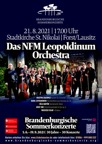 Brandenburgische Sommerkonzerte wieder in Forst 10.08.2021 21:00 - Frank Henschel Nach sieben Jahren machen die Brandenburgischen Sommerkonzerte wieder Station in Forst.Diesmal soll das NFM Leopoldinum Orchestra aus Wroclaw (Breslau) die Besucher aus fern und nah erfreuen. Die Aula Leopoldina der Universität Wroclaw (Breslau) ist eine der größten und schönsten barocken Hallen Europas. Sie ist Namensgeber für dieses polnische Spitzenorchester, welches als eines der Residenzorchester im neuen Kulturzentrum Wroclaws, dem National Forum of Music (NFM) konzertiert. Tourneen führten den Klangkörper zu vielen Musikfestivals in ganz Europa. 21. August, 17 Uhr Stadtkirche St. Nikolai. Und zur Einstimmung: https://youtu.be/dmjPKGhjBQQ |