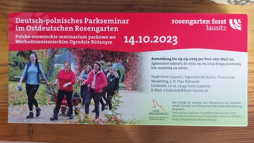 Nach vielen polnisch/deutschen Parkseminaren im Schlosspark Brody gibt es in diesem Jahr das zweite deutsch/polnisches Parkseminar im Ostdeutschen Rosengarten Forst. Mehr dazu hier:https://www.rosengarten-forst.de/deutsch-polnisches-parkseminar.152296.htm
