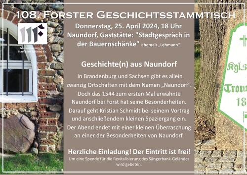 Geschichte(n) aus Naundorf - 108. Forster Geschichtsstammtisch 14.04.2024 17:00 - Frank Henschel ![]() |