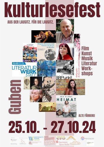 Kulturlesefest 25-27. Oktober in Guben 24.09.2024 12:00 - Andreas Peter ![]() Feierliche Eröffnung Freitag, 25.10.2024, 15 Uhr in der Alten Färberei Bernd Beyer aus Forst liest am 25.10.2024 um 16 Uhr in der Alten Färberei. Beppo Küster erzählt aus seinem "Kessel Buntes" am 25.10. um 19 Uhr in der Alten Färberei. Samstag, den 26.10 um 14 Uhr stellt der Museumsverein Forst das Buch "Strich durch die Rechnung" vor. Samstag, den 26.10. um 15 Uhr liest Sabine Ebert aus ihrem aktuellen historischen Roman "Der Silberbaum", in dem es um Heinrich den Erlauchten, Markgraf von Meißen und der Ostmark geht. Samstag, 26.10. um 19.30 Uhr gibt es im ehemaligen Filmtheater Friedensgrenze, Karl-Marx-Straße 56 Ausschnitte aus einem Dokumentarfilm über Willy Brandt .und dazu anschließend ein Gespräch mit der Historikerin Katja Hoyer. Am Sonntag, den 27.10. liest Christine von Brühl aus ihrem Buch "Schwäne in Gold und Weiß" in der Kirche des Guten Hirten, Straupitzstraße 1. Der Eintritt zu allen Veranstaltungen ist kostenlos. Weitere Info´s aus dem reichhaltigen Programm wird es dann noch verschiedentlich im Netz geben. |