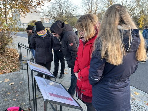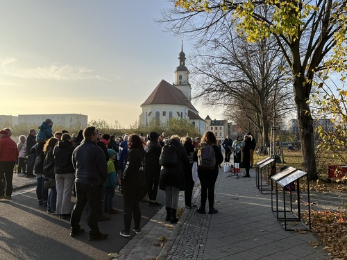 Gedenken an die Pogromnacht und Stolpersteinverlegung in Forst (Lausitz) 09.11.2024 20:00 - Stadt Forst ![]() Nach der Begrüßung durch die Bürgermeisterin Simone Taubenek und den Gedenkworten des Pfarrers Simon Klaas erfolgte die Vorstellung der Biografien von Erna Perlich und Ilse Pick durch Hannah Schütze, Projektleiterin Respekt Coaches am Diakonischen Werk Niederlausitz. Schülerinnen und Schüler der Gutenberg Oberschule präsentierten ihr Projekt zur AG Stolpersteine, die von Sozialarbeiterinnen des NIX e.V.- Forst - Lausitz begleitet wurde. In einer kleinen Ausstellung gaben die Jugendlichen Einblicke in das Leben der Familie Perlich/Pick und setzten ein starkes Zeichen gegen das Vergessen. Die Stolpersteine wurden durch Mitarbeitende des städtischen Betriebshofes verlegt, gefolgt von einer emotionalen Kranzniederlegung. Die Veranstaltung bot Raum für Austausch und gemeinsames Erinnern – ein wichtiger Schritt zur Aufarbeitung und zum Gedenken. |