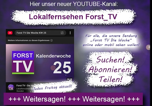 Veränderungen beim Forster Stadtkanal bzw. Forst TV 14.07.2025 21:38 - Frank Henschel ![]() Ein Internetauftritt folgt noch. Weitere Infos auf den Bildern hier: |