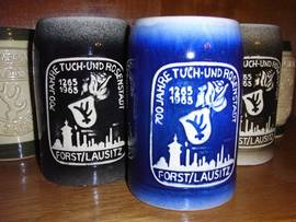 Einem Krug auf den Grund gehen … 12.01.2015 21:30 - Frank Henschel ![]() Nun bekamen die „Letzten Vasallen derer von Bieberstein" um Rupert vom Wagenberg alias Aimo Bartel eines dieser 50 Jahre alten Stücke aus dem Sächsischen „zurück geschenkt“. Dies war Anlass dem Krug und der damaligen Jubiläumsfeier auf den Grund zu gehen. Wie war das 1965? Wie wurde neben dem damaligen Festumzug das Stadtjubiläum begangen. Was wurde den Gästen der Stadt geboten. Und zu dem Krug: Wer hat die Krüge damals hergestellt? Wo sind sie produziert worden und in welcher Stückzahl? Wer hatte die Idee für die Motive auf dem Krug? Um hilfreiche Informationen zum Krug sowie um Erinnerungen an die 700 Jahrfeier in Forst bittet: Aimo Bartel mobil 0173-3522811 E-Mail: info@johannesgaudium.de Bildquellen: Foto 1: Frank Owczarek Foto 2: Hartmut Landes in Lausitzer Rundschau vom 12.1.2015 |