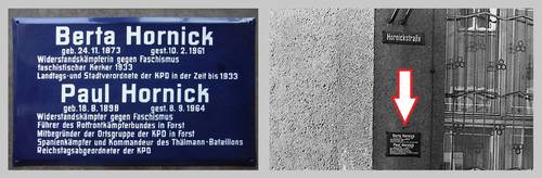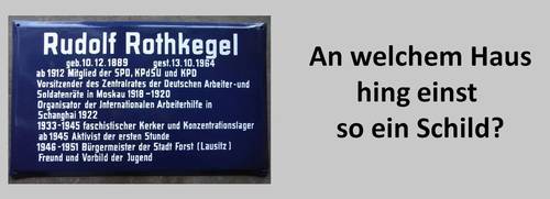 ERFOLGE, ERFOLGE! Serie von Emailschildern konnte komplettiert werden. 04.03.2015 21:50 - Frank Henschel ![]() Die Schilder, die an dieser Stelle zusammen präsentiert werden können, stammen aus den 70ziger Jahren des letzten Jahrhunderts. Nach dem 2. Weltkrieg kam es zu einer Vielzahl von Straßenumbenennungen. So verschwanden folgerichtig die durch den nationalsozialistischen Zeitgeist eingeführten Straßennamen. Dazu kamen auch einige Straßennamen mit Bezug zur Kaiserzeit sowie Straßen die auf Städte und Orte im heutigen Polen Bezug nahmen. Hastig mussten, Marx, Engels, Bebel, Thälmann, Cyrankiewicz u.a. Persönlichkeiten herhalten. Wobei alle keinen Bezug zur Stadt Forst hatten. In den 70ziger Jahren kam es dagegen zu einigen Straßenumbenennungen, die einen gewissen Forst Bezug erkennen lassen. Zur Einweihung des „Panzerdenkmals“ wurde die Amtstrasse in „Str. der Befreiung“. Um dieselbe Zeit, kamen auch einige Antifaschisten aus Forst oder mit zeitweiligen Wohnsitz in Forst zu Ehren. So wurde die Lothringer Straße in Otto-Nagel-Straße, die Frankfurter Straße in Hornickstraße und die Gubener Straße in Rudolf-Rothkegel Straße umbenannt. Diesmal lieferten die Verantwortlichen auch gleich ein paar erklärende Zusatzschilder. Qualitativ waren sie recht gut gemacht. Und ohne Frage stellen sie ein Stück Forster Stadtgeschichte dar, auch wenn diese Straßenumbenennungen, etwa zwanzig Jahre später, rückgängig gemacht wurden. Ausgenommen davon war die Otto Nagel-Straße. Neben der Dokumentation der Schilder an sich, konnten bis auf das Schild für Rudolf Rothkegel auch die Orte ihrer Anbringung festgestellt werden. Ein Schild für den Maler Otto Nagel befindet sich seit 2014 im Stadtarchiv. Die Schilder „Hornick“ und „Rothkegel“ befinden sich in der Heimatsammlung von Frank Owczarek, dem hier ausdrücklich für die Aufklärung und die Fotos in dieser „Verschollenen“- Frage gedankt wird. Um Hinweise oder Fotos, die Auskunft über den Ort geben, an dem das „Rothkegel-Schild“ angebracht war, bittet: Frank Henschel mobil 0172 -3759660 f.henschel@gmx.de Extrabild im Großformat - Hier klicken |
