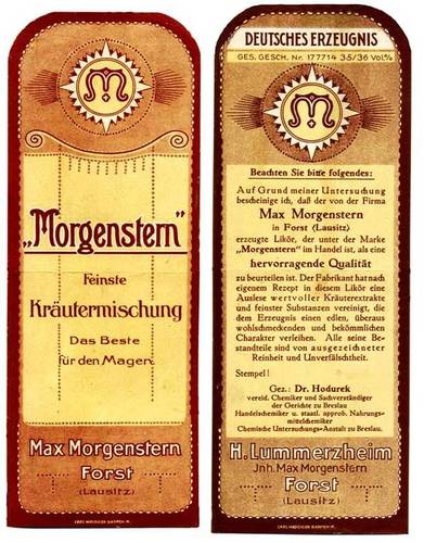 ![]() Die gesetzlich geschützte Marke "Morgenstern" - hier das Original Etikett um 1930. |