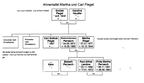 Ahnenforscher möchte die letzten 100 Jahre über die Familien PERRASCH und LANDOW in Forst erkunden 04.08.2015 16:52 - Helmut Fleischhauer ![]() "Ich heiße Karl-Heinz Klein und bin Ing. im Ruhestand. Endlich komme ich dazu meine Freizeit zu nutzen und nach meinen Wurzeln zu suchen. Meine ersten Spuren führen mich in die Lausitz nach Cottbus und nach Forst. Die Schwester ( Marta Flegel) meines Großvaters Carl Gottlieb Flegel aus Cottbus war mit dem Besitzer der FORSTER-ISOLIERWERKE ( Hermann Perrasch) verheiratet. Die Anzeige über die Forster Isolier-Werke in der Anlage erschien ca 1927? Wer hat davon ein Bild oder ein Zeitungsbericht? (Abbildung 1) Wenn die Forster Leserschaft mich dabei unterstützt, könnte es gelingen, die Nachkommen der Familien PERRASCH und LANDOW zu motivieren, mir ihre Geschichte über die Familie zu erzählen. Der Stammbaum der Familie sieht so aus wie auf Abbildung 2. Warum ich diesen Weg wähle? Mein Versuch über die Örtliche Zeitung Kontakte mit meiner Familie in Forst aufzunehmen ist leider daran gescheitert, dass sich aus der Bevölkerung niemand gemeldet hat. Würde mich riesig freuen, wenn der Artikel dieses Mal zum Erfolg führt, d.h. wenn sich die Nachkommen melden." Kontakt: heinz.klein43 [at) gmx.de Es wäre schön, wenn auch wir eine Rückmeldung erhalten. Einen Beitrag 'Erfolge' mögen wir. Kontakte: Frank Henschel: f.henschel [at] gmx.de Helmut P. Fleischhauer: hpf [at] yangos.com |