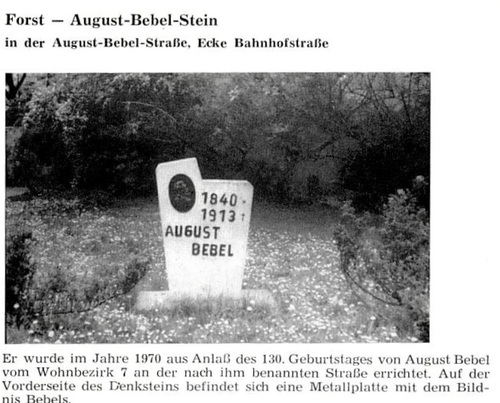 Vom Bismarck-Denkmal zum August-Bebel-Gedenkstein. Eine Forster Metamorphose. 07.11.2015 22:00 - Frank Henschel ![]() Eines Tages kam sein Lehrmeister mit dem kupfernen Kopf vom Forster Bismarck-Denkmal. Dieser wurde eingeschmolzen und daraus Fahnenspitzen für den 1. Mai Umzug gegossen. Im gleichen Zusammenhang berichtete der Herr auch, dass die Plakette am Gedenkstein für August Bebel, heute August-Bebel-Straße Ecke Bahnhofstraße, aus dem Metall des Bismarck-Denkmals entstanden sein soll. Anzumerken ist, dass zwischen beiden Ereignissen, dem gießen der Fahnenspitzen für den 1.Mai und der Entstehung des Bebel-Reliefs etwa zwanzig Jahre liegen. Der Bebel-Gedenkstein entstand erst 1970. Ältere Artikel zum verschollenen Bismarck-Denkmal sind hier auf dieser Seite am 19.10.2015, 02.03.2015 und 23.12.2014 erschienen Um weitere Hinweise zum verschollenen Bismarck-Denkmal bittet: Frank Henschel mobil 0172 -3759660 f.henschel@gmx.de Foto: H. Fleischhauer Postkarte: Sammlung Frank Henschel Extrabild im Großformat - Hier klicken |