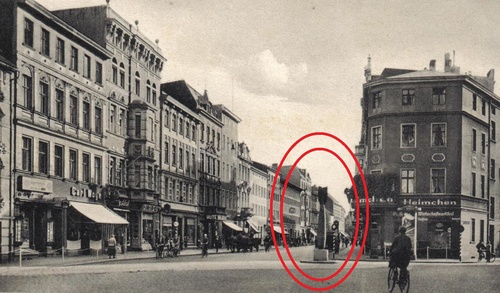 Der kommende Geschichtsstammtisch am 28.1.2016 wird sich mit Nagel-Figuren und Nagel-Bildern des 1. Weltkriegs beschäftigen. Neben mehreren lausitzer Figuren und Bildern ist mindestens ein solches Objekt auch aus dem heutigen Forster Stadtgebiet bekannt. In der weiteren Recherche rückte aber nun auch ein zweites Forster Objekt in die Diskussion. Wobei es sich hier um ein Objekt der Nazizeit handeln dürfte. Auf einigen Postkarten aus den späten dreißiger Jahren mit dem Berliner Platz kann man die fragliche Figur entdecken. Eine kleine Dokumentation des Museumsvereins aus 1996 gibt Auskunft, dass es sich bei dem etwa drei Meter hohen Bombenattrappe um eine Nagelungsfigur handeln würde. Andere Einschätzungen gehen davon aus, dass es sich lediglich um eine Propagandafigur zum Thema Luftschutz handeln würde. So wird auch ein Vergleich mit der Stadt Guben herangezogen, wo es eine ähnliche Figur stand. Deutschland begann den Weltkrieg 1939. Doch Propagandainitiativen (Plakate, Briefmarken Lotterien) zum Thema Luftschutz sind jedoch schon mindestens ab 1935 dokumentiert.