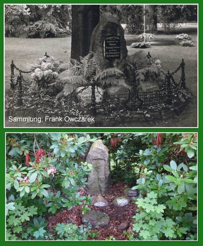 Verschollenes und Wiederentdecktes an der Sänger-Eiche 03.07.2016 11:00 - Frank Henschel und Frank Owczarek ![]() Vermutlich etwas weniger bekannt ist heute die Sänger-Eiche im alten Stadtpark (R.-Wagner/Jänicke Strasse). Die Anlage mit einer Eiche, einem Gedenkstein und einer schönen Metallketteneinfassung mit Lyra wurde im Herbst 1893 angelegt. Lediglich der seiner Gedenktafel beraubte Stein erinnert noch etwas an die Pflanzung. Die letzten Reste der Metalleinfassung wurden im vergangenen Winter gestohlen. Am 1. August 1921 kam es aus traurigem Anlass zur Erweiterung der Anlage. Vier Sänger aus dem Forster Männer-Gesangverein ließen im 1. Weltkrieg ihr Leben. Für diese setzte der Verein vier schlichte Gedenksteine. Drei Steine konnten bei einer kürzlich vorgenommenen Sondierung ausgemacht werden. Es sind die Gedenksteine für Felix Rublack (+21.08.1917 in Rumänien), Paul Kamptz (+29.02.1916 Verdun, Frankreich), Alfred Noack (+05.12.1915 in Kuschljany, Russland). Lediglich der Stein für Richard Hartmann (+21.11.1917 in Cambrai, Frankreich) blieb bisher verschwunden. Wir finden, dass es eine lohnende Aufgabe ist, diese mit vielen Geschichten verbundene Anlage wieder ein Stück in die Öffentlichkeit zu rücken. Vielleicht finden sich Geschichtsinteressierte und traditionsbewusste Sänger um hier Hand anzulegen. UND wer weiß, vielleicht schlummert ja auch noch irgendwo die verschollene Gedenktafel der Sängereiche. Um Hinweise dazu bitten Frank Henschel, mail: f.henschel@gmx.de und Frank Owczarek, mail: frankow01@aol.com |